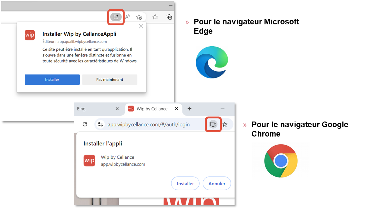 Pour plus de facilité, il est possible d’installer l’application sur le bureau en cliquant sur le logo ci-dessous, puis cliquez sur