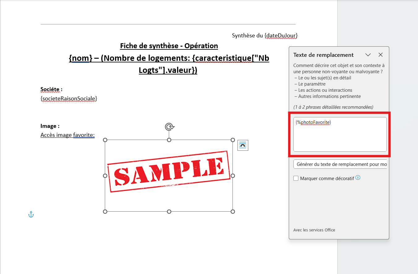 3) Insérer dans la zone de texte: {%photoFavorite}