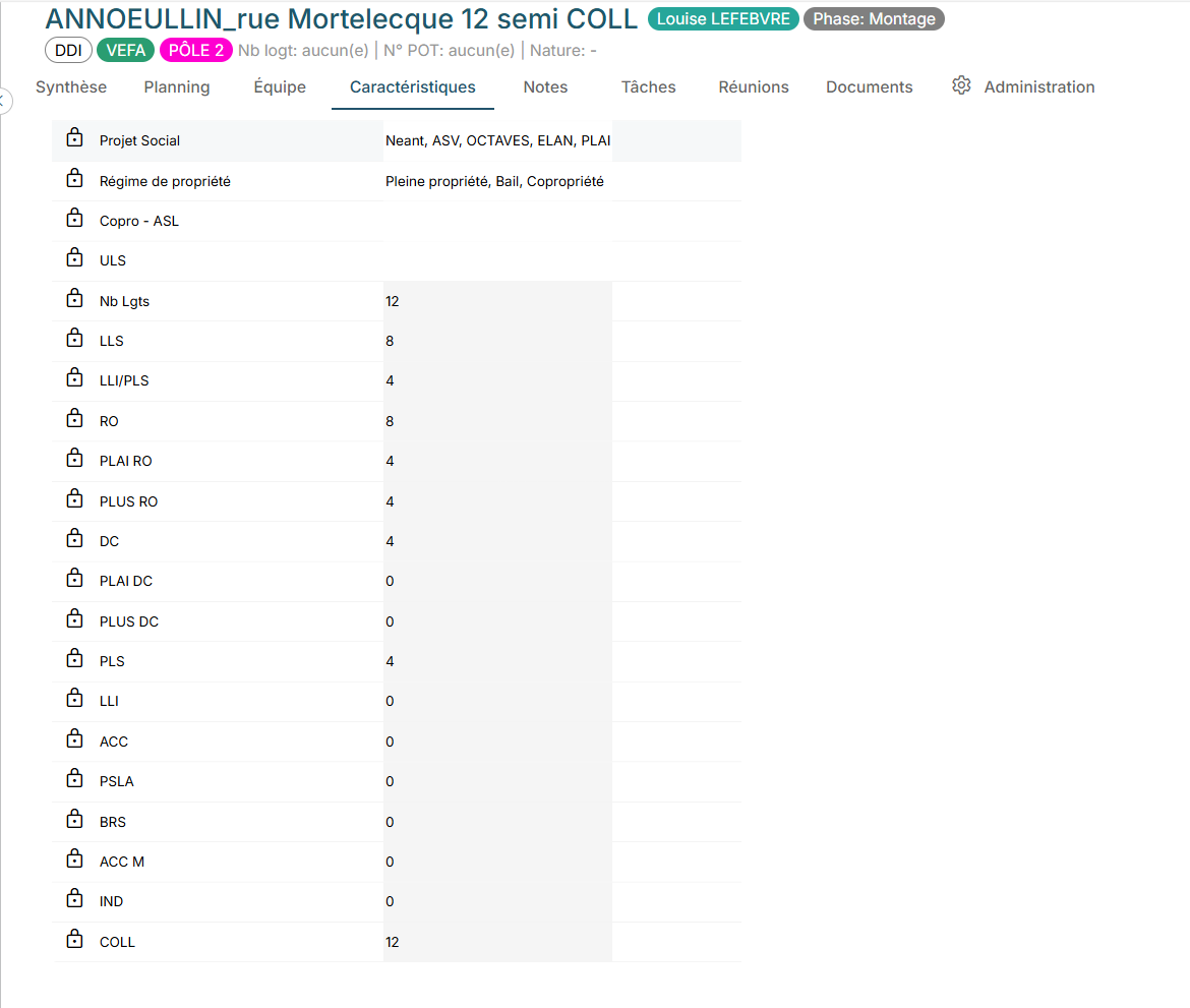 Allez dans la synthèse d'un de vos projet et descendez jusqu' a "Répartition de lots".