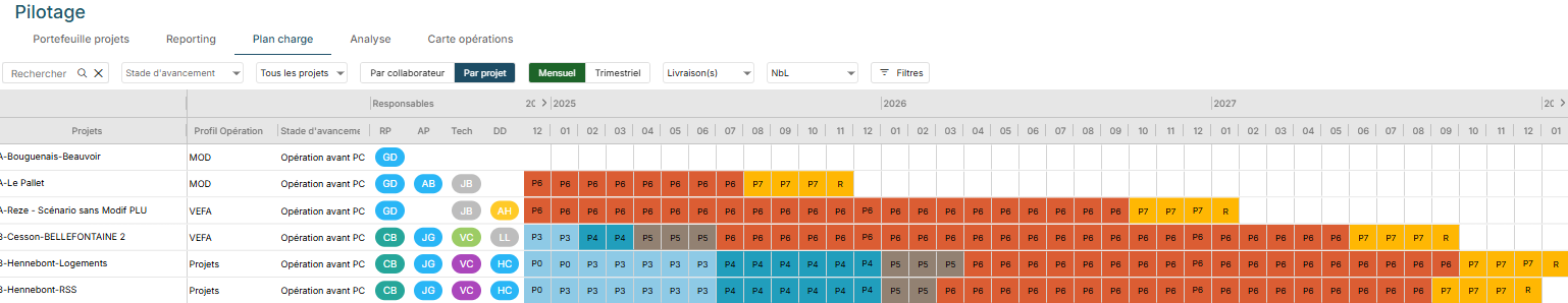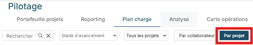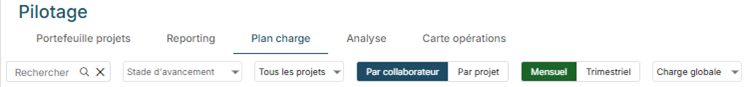 Le plan de charge est disponible sur le pilotage dans l’onglet Plan de charge :