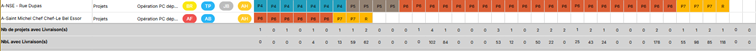 Il y aura alors un affichage par projet : une ligne est un projet :