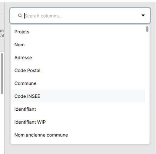 Puis chercher les colonnes dans la liste déroulante :
